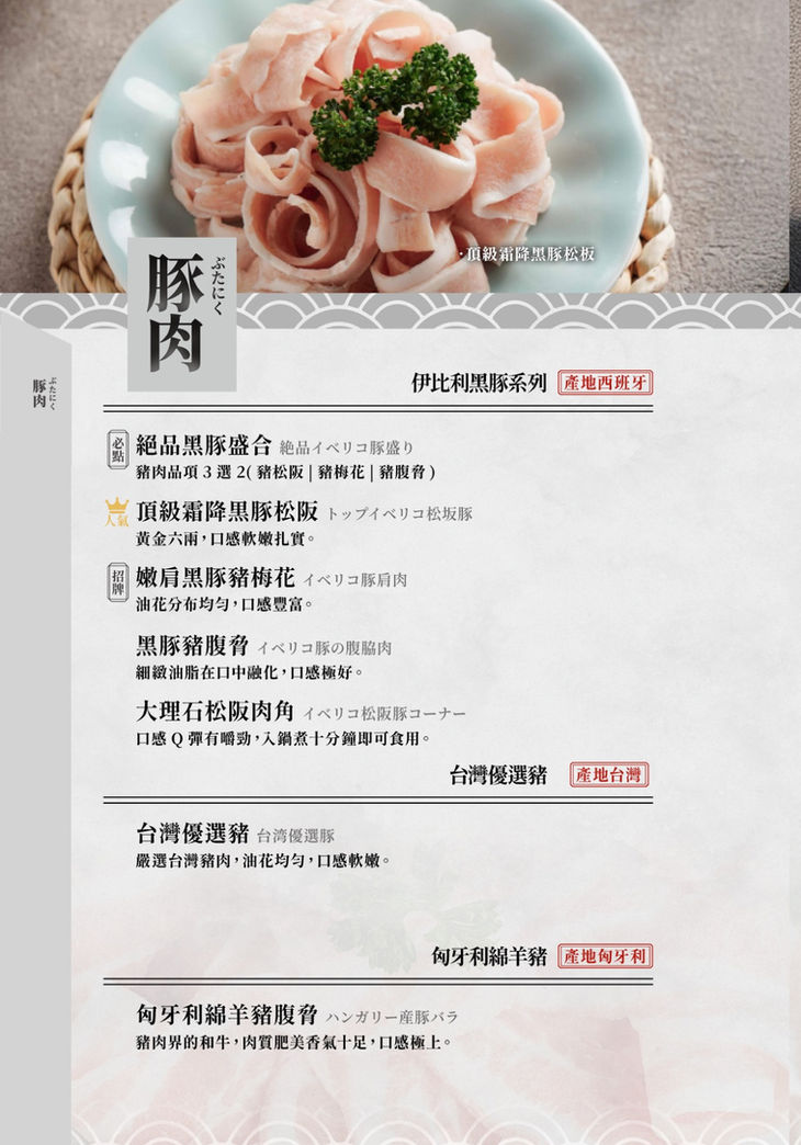 每片薄厚度相當,盤中瘦肉的艷紅色擁有如和牛般的漂亮油花,不管是油花還是口感絲毫不輸給日本進口的肉品喔!