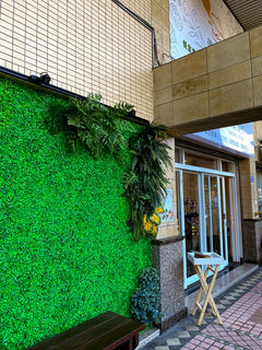 透明落地窗設計可以清楚看見店內環境,店家主要販售健康低脂少油餐食,以外帶、外送為主,因空間有限內用目前提供3人座位置。門旁則布置了一面植栽牆讓顧客可以打卡拍照留念,前方備有長椅也可讓顧客在等待的同時稍作休息,相當貼心。